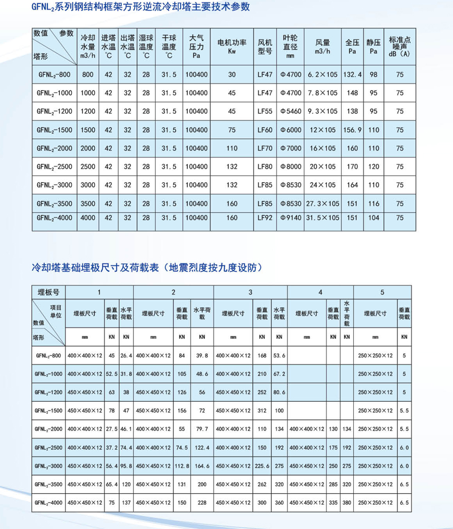 工業(yè)型玻璃鋼冷卻塔,室友機械工業(yè)部第四設計研究院在原設計的同類塔測試數據基礎上改進設計的。本設計的特點是冷卻塔風機配有變扭矩雙速電機;當氣溫較低時,例如晚上,電機開低速,冷卻噪聲可低3-5dB(A)。此外,選用雙速電機節(jié)電顯著。多臺冷卻塔配單速電機時,為了節(jié)電,當空氣濕球溫度低時,可停部分電機,但仍比用雙速電機(以年計)多耗電40%。