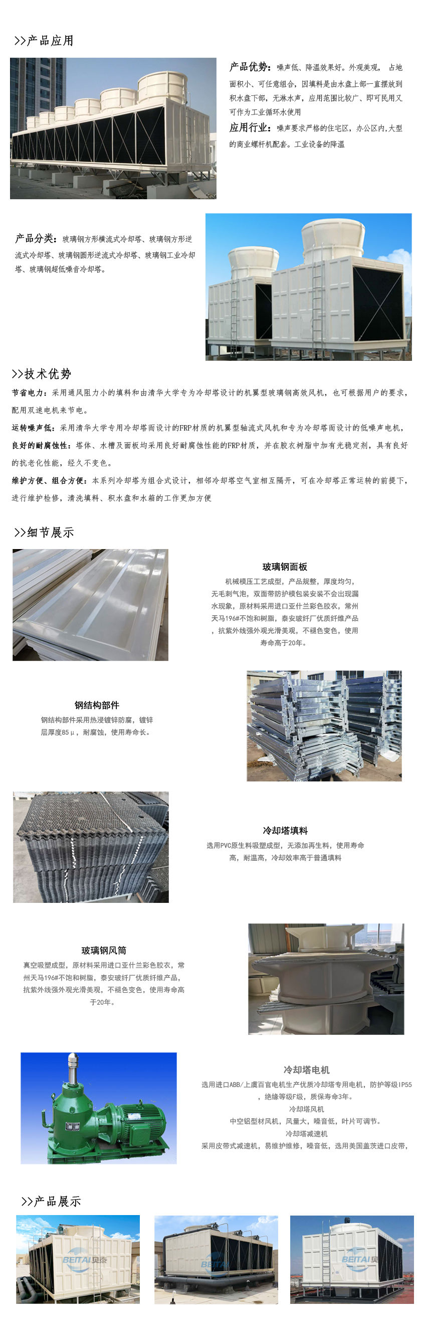 “中小型玻璃纖維增強塑料冷卻塔”規定的熱力性能及噪聲數值進行設計的新型橫流式玻璃鋼冷卻塔。